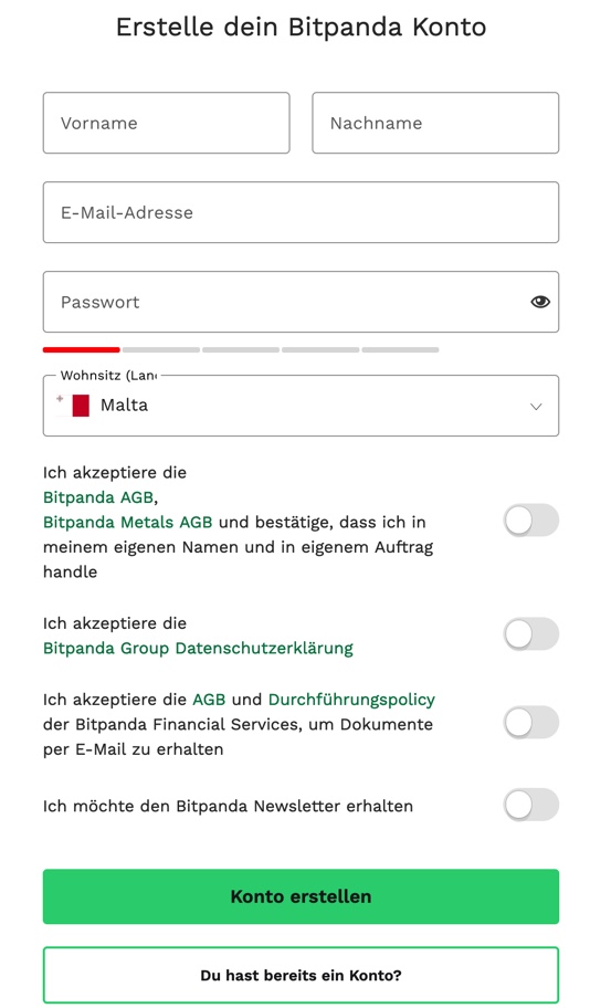 Bevor ich allerdings zur Einzahlung komme, benötigst du einen Account bei Coinbase oder Bitpanda.