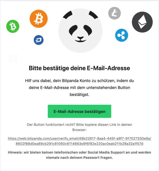 Nach Abschicken des Formulars wird eine Email mit einem Bestätigungslink versendet. Nach Bestätigung deiner Emailadresse ist der Account vorerst eröffnet, steht allerdings noch nicht 100% zur Verfügung.