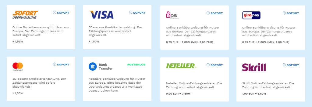 Hierbei stehen diverse Einzahlmethoden zur Verfügung: