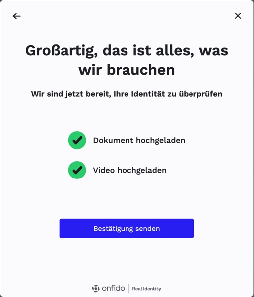 Nach Upload der Vorder- und Rückseite ist die Verifizierung erledigt. Nun musst du nur noch einige Minuten warten, bis eine endgültige Überprüfung stattgefunden hat und dein Konto ist einsatzbereit. Sollte bei der Verifizierung ein Fehler auftreten so erhältst du auch darüber innerhalb weniger Minuten eine Nachricht.